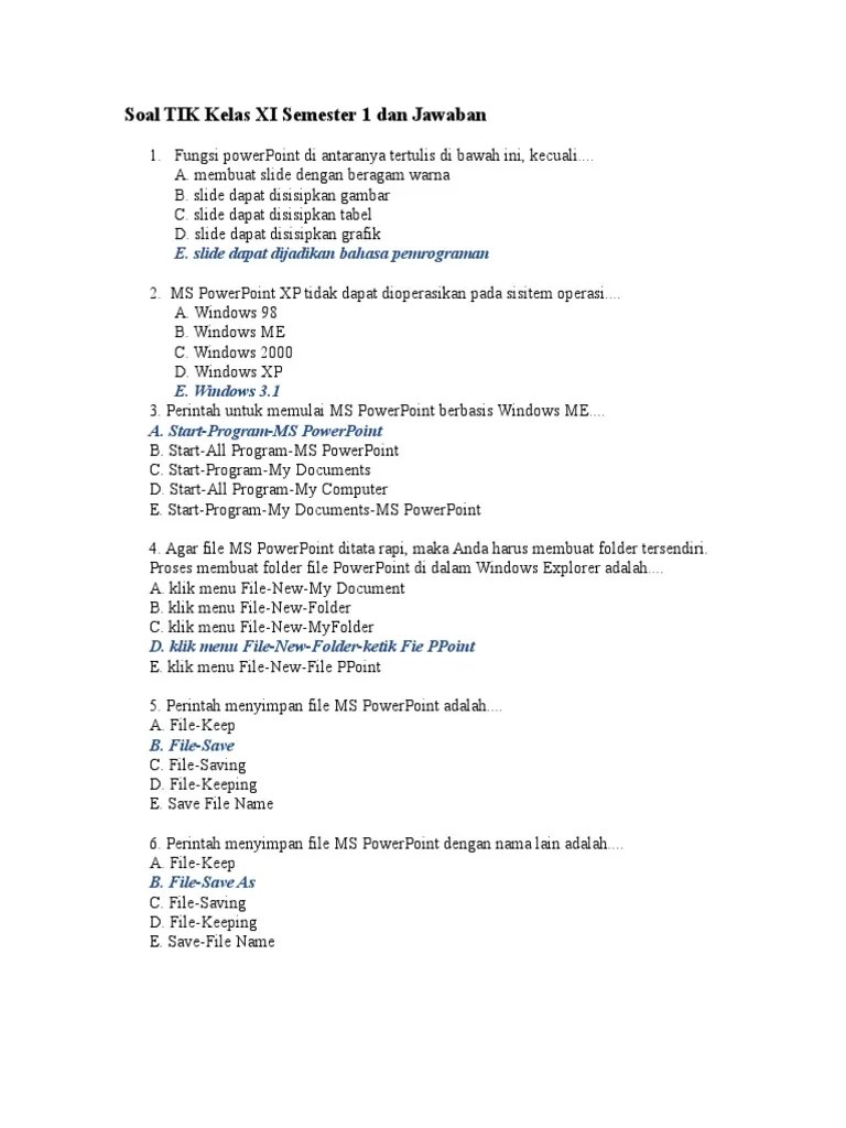 Soal Tik Kelas 11 / Materi Pelajaran Tik Sma Kelas Xi Semester 1 2 Lengkap / Uas kelas xi semester ii 20 pertanyaan | by yo5ep | last updated:. Apabila ada beberapa file yang tidak bisa di download bapak/ibu. 2287 questions all questions 5 questions 6 questions 7 questions 8 questions 9 questions 10 questions 11 questions 12 questions 13 questions 14 questions 15 questions 16 questions 17 questions 18 questions 19 questions 20 questions Soal ppkn uas semester 1 kelas x xi xii tahun ajaran 20182019 kurikulum 2013pada file kumpulan soal ppkn atau soal pkn uas semester 1 kelas x xi dan xii ini terdapat pulan kunci jawaban dan pembahasan yang. Soal tik kelas xi semester ganjil. Soal tik semester ganjil tahun 2009 kelas xi.